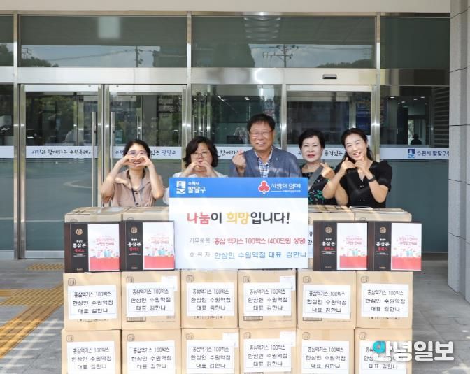 안녕일보 배윤 기자 | 농협 홍삼 한삼인 수원역점은 지난 5일, 수원시 팔달구에 홍삼 액기스 100박스를 기부했다.