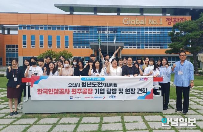 안녕일보 배윤 기자 | 오산시는 지난 9월 4일, 청년도전지원사업 장기 프로그램 참여자들과 함께 한국인삼공사 원주공장을 방문해 기업 현장 견학과 멘토링 프로그램을 진행했다고 밝혔다.