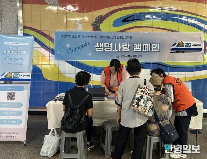 안녕일보 배윤 기자 | 오산시정신건강복지센터 부설 자살예방센터는 9월 5일, 오산역에서 생명존중안심마을 사업의 일환으로 자살예방 합동 캠페인을 진행했다.