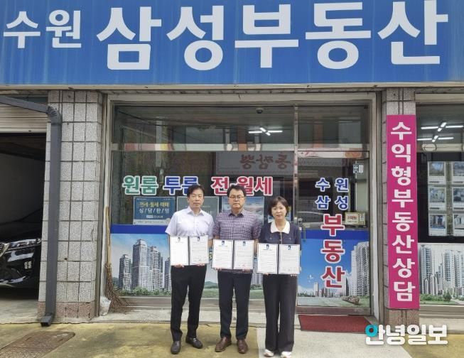 안녕일보 배윤 기자 | 수원특례시 영통구 영통2동은 8일, 영통2동 지역사회보장협의체, 삼성공인중개사와 함께 복지사각지대 발굴 등 지역사회 복지증진을 위한 새빛복지중개사 업무협약(MOU)을 맺었다.