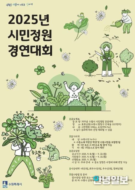 안녕일보 배윤 기자 | 수원시는 9월 22일까지 ‘2025년 시민정원 경연대회’에 참가할 시민을 모집한다.