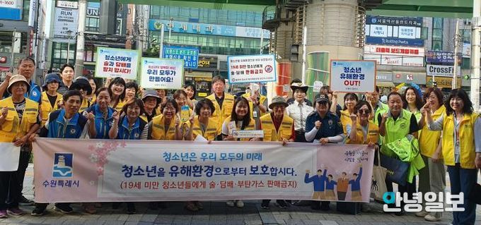 안녕일보 배윤 기자 | 수원시 장안구는 지난 10일, 율천동 번화가 일대에서 민·관·경 합동으로 청소년 유해환경 점검 및 선도 캠페인을 실시했다.