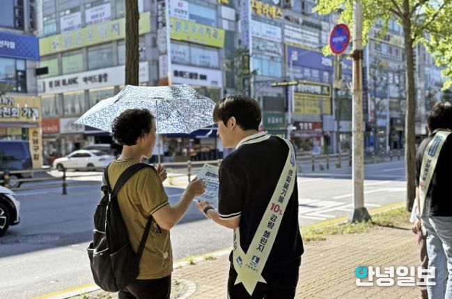 안녕일보 배윤 기자 | 수원시 권선구 권선2동 행정복지센터는 지난 10일, 권선동 1189번지 일원(이마트 수원점 앞)에서 대시민 새빛 환경수호자 홍보 캠페인을 추진했다.