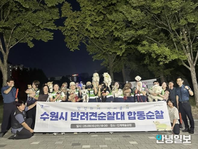 안녕일보 배윤 기자 | 수원시는 10~11일 4개 구 관할 경찰서와 함께 ‘2025년 수원시 반려견 순찰대 구별 야간 합동순찰’을 했다.