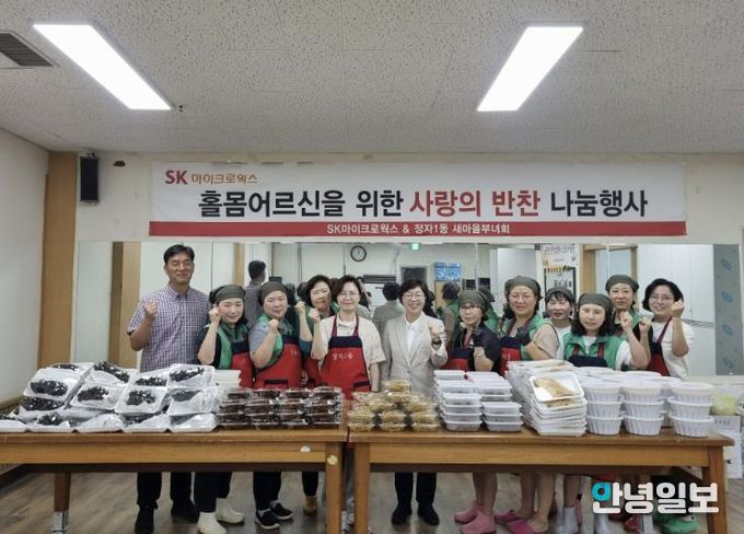 안녕일보 배윤 기자 | 수원시 정자1동 새마을부녀회는 지난 11일, SK마이크로웍스의 후원을 받아 홀몸 어르신 등 관내 취약계층을 위한 사랑의 반찬 나눔행사를 진행했다.