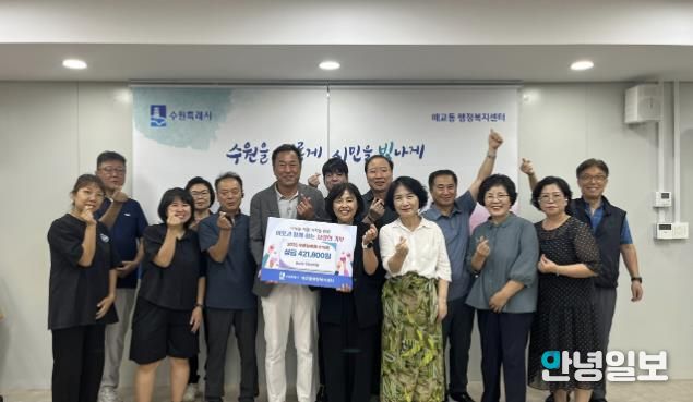 이번 성금은 지난 8월 30일 매교동 행정복지센터 신청사부지에서 열린 ‘2025 매교동 무궁화 축제’ 행사장에서 리본아트 등 6개의 플리마켓과 닭강정 등 5개의 먹거리부스 등을 운영한 수익금으로 마련됐으며, 전달된 성금은 경기공동모금회를 통해 도움이 필요한 취약계층에 사용될 예정이다.