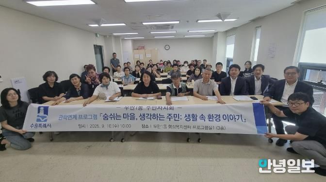 안녕일보 배윤 기자 | 수원시 팔달구 우만1동 주민자치회는 지난 10일 우만1동 행정복지센터에서 환경 인식 제고를 위한 '숨쉬는 마을, 생각하는 주민: 생활 속 환경 이야기' 프로그램을 개최했다.