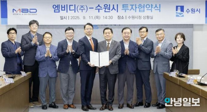 안녕일보 배윤 기자 | 수원시가 지난 11일 맞춤형 항암제 추천 서비스 플랫폼 개발 기업인 엠비디㈜와 투자 협약을 체결하며, 민선 8기 출범 후 20개 첨단기업을 유치하는 성과를 거뒀다.