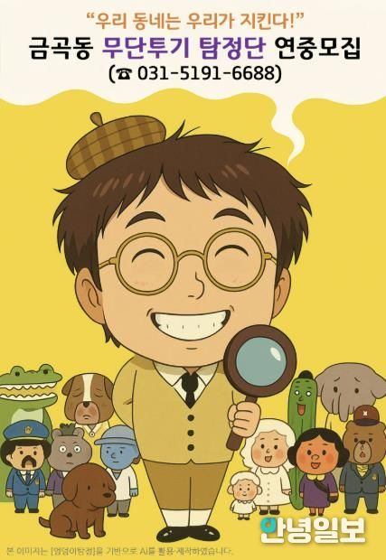 안녕일보 배윤 기자 | 수원시 권선구 금곡동 행정복지센터는 무단투기를 뿌리 뽑고 깨끗한 마을 환경을 조성하기 위해 주민 주도형 ‘금곡동 무단투기 탐정단’을 모집하고 9월 22일부터 활동을 시작한다고 밝혔다.