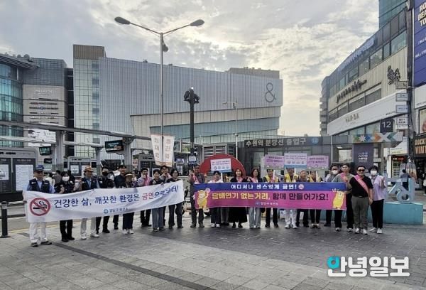 안녕일보 배윤 기자 | 수원시 팔달구 매산동은 지난 9월 15일 팔달구보건소 주관으로 진행된 ‘로데오거리 금연환경조성 합동 캠페인’에 수원팔달경찰서, 팔달구청, 매산로 테마거리 상인회 등과 함께 참여하여 금연문화 정착과 깨끗한 거리환경 조성을 위한 활동을 펼쳤다.