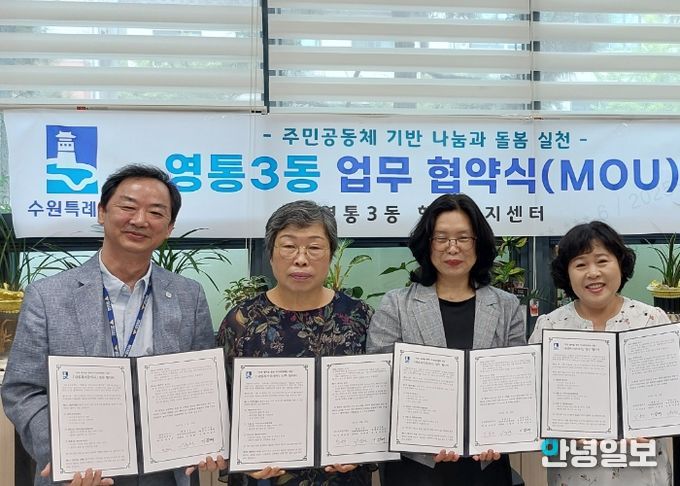 안녕일보 배윤 기자 | 수원시 영통3동은 9월 16일, 영통3동 행정복지센터에서 ‘새빛복지중개사’ 민·관 협력사업 협약식을 열고, 위기가구를 발견하고 주거취약계층에게 주거서비스를 지원하기 위한 민·관 협력 체계를 구축했다.