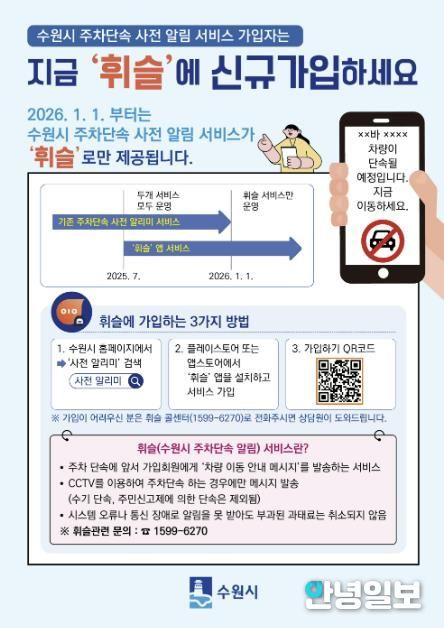 2026년 1월 1일부터 주차단속 사전 알리 서비스는 종료되고, 휘슬을 통해서만 단속 알림이 발송된다.