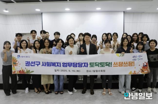 안녕일보 배윤 기자 | 수원시 권선구는 지난 16일, 일월수목원에서 권선구 사회복지 담당 직원 30명이 참여한 가운데 2025년 하반기 권선이음을 실시했다.