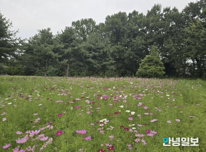 일반 코스모스, 빅스타, 황화코스모스가 어우러져 화려한 가을 풍경을 선사한다. 코스모스는 9월 중순 절정을 이룰 것으로 예상된다.