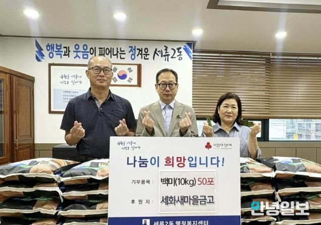 안녕일보 배윤 기자 | 수원시 권선구 세류2동 소재 MG세화새마을금고는 지난 17일, 추석 명절을 맞이하여 취약계층을 위한 백미 10kg 50포를 세류2동 행정복지센터에 기부했다.