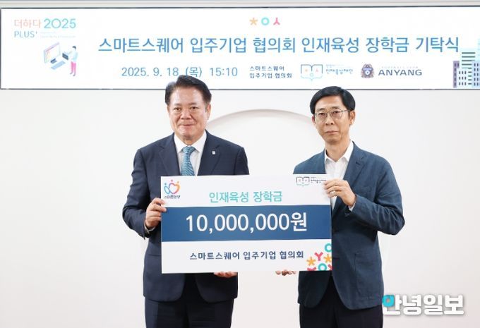 안녕일보 배윤 기자 | 안양시 인재육성재단은 18일 스마트 스퀘어 입주기업 협의회로부터 1천만 원의 인재육성 장학금을 기탁받았다고 19일 밝혔다.