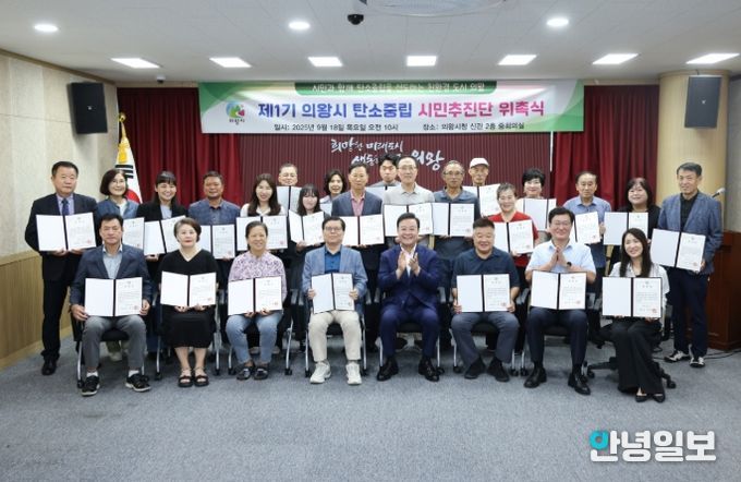 안녕일보 배윤 기자 | 의왕시는 9월 18일 시청 중회의실에서‘의왕시 탄소중립 시민추진단 위촉식’을 개최하고, 기후위기 대응과 탄소중립 실현을 위한 시민 참여 체계를 구축했다.