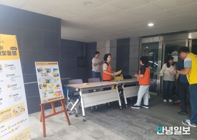 안녕일보 배윤 기자 | 수원시 영통구청은 지난 15일부터 1주일간 광교1동과 원천동 지역사회보장협의체와 협력하여 '수원새빛돌봄(누구나)' 사업을 홍보했다.