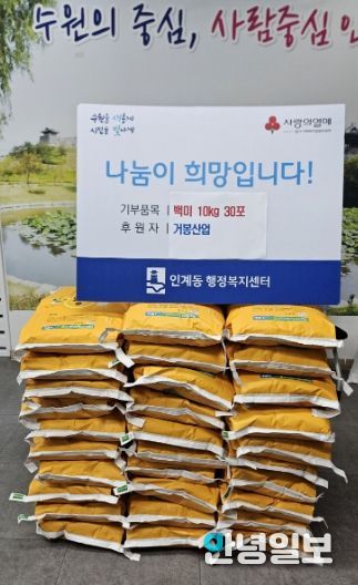 안녕일보 배윤 기자 | 거봉산업에서 지난 9월 18일 수원시 팔달구 인계동행정복지센터에 취약계층을 위한 백미 10kg 30포를 전달했다.