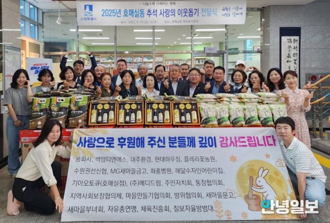 안녕일보 배윤 기자 | 수원시 권선구 호매실동 행정복지센터에서는 지난 19일, 2025년 추석 명절을 맞이하여 이웃돕기 전달식을 진행했다.