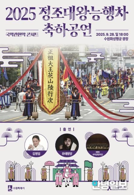 안녕일보 배윤 기자 | ‘2025 정조대왕 능행차 축하공연’이 9월 28일 수원화성 행궁광장에서 열린다.