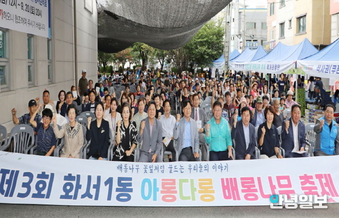 안녕일보 배윤 기자 | 수원시 팔달구 화서1동 주민자치회는 지난 9월 20일 동 행정복지센터 앞에서 주민 500여명이 참여한 가운데 제3회 ‘화서1동 아롱다롱 배롱나무 축제’를 성황리에 개최했다. 올해로 3회를 맞이한 이번 축제는 주민 노래자랑, 문화공연, 체험부스, 먹거리장터 등 다양한 주민 참여 프로그램으로 즐거움을 더했다.