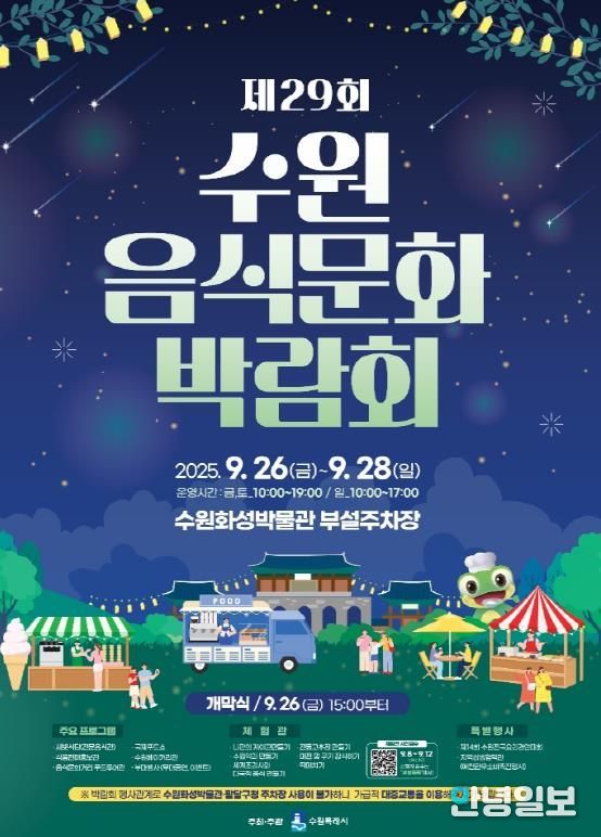 안녕일보 배윤 기자 | 제29회 수원음식문화박람회가 9월 26~28일 수원화성박물관 부설주차장에서 열린다.