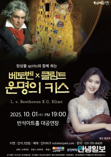 안녕일보 배윤 기자 | 화성특례시와 (재)화성시문화관광재단이 추진하는‘2025년 경기예술지원 모든예술31 화성’ 공모사업의 선정작 'Spirito 앙상블과 함께하는 베토벤x클림트, 운명의 키스'가 10월 1일 오후 7시에 동탄복합문화센터 반석아트홀에서 개최된다.