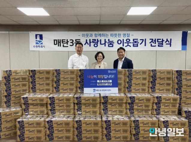 안녕일보 배윤 기자 | 수원시 영통구 매탄3동행정복지센터는 지난 22일, 추석 명절을 맞이하여 매탄중심상가 상인회에서 후원한 컵라면 200박스 전달식을 가졌다.
