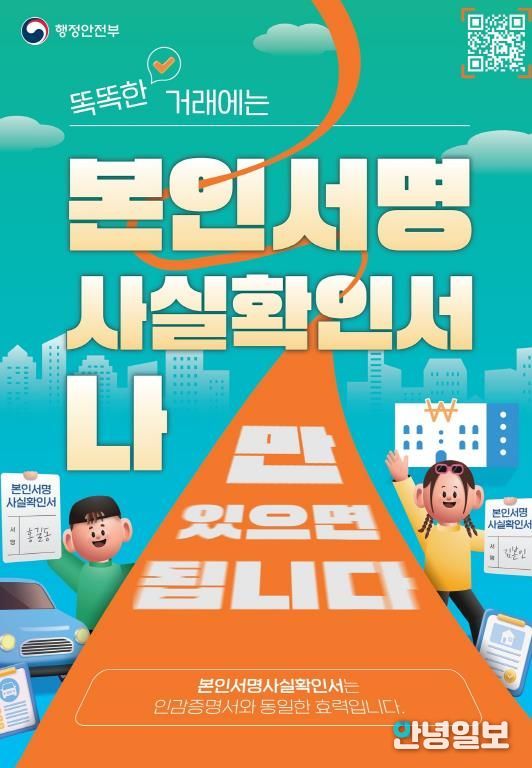 ‘본인서명사실확인서’는 인감증명서와 동일한 효력을 가지면서도 인감도장 사전 등록이 필요 없는 제도다. 전국 어디서나 신분증만 있으면 즉시 발급 가능하며, 본인이 직접 서명해 발급하기 때문에 대리 발급에 따른 사고를 원천 차단할 수 있다. 또한 2028년까지 발급 수수료(600원)가 면제돼 주민 부담도 줄어든다.