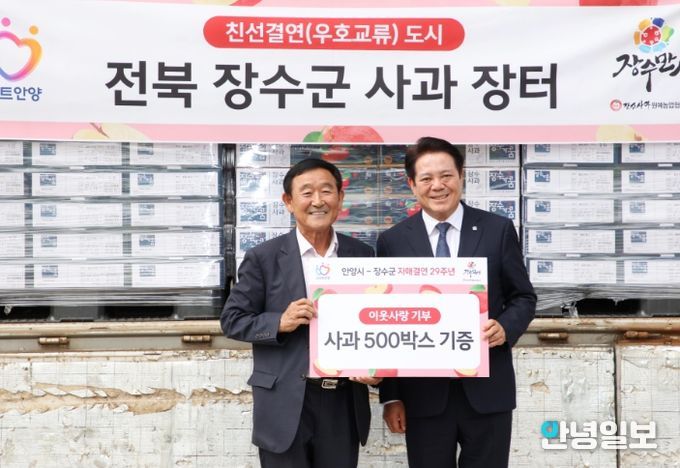 안녕일보 배윤 기자 | 안양시는 전북 장수군으로부터 지역 특산물인 사과 500박스(1,500만원 상당)를 기부받아 관내 사회복지시설에 전달했다고 24일 밝혔다.
