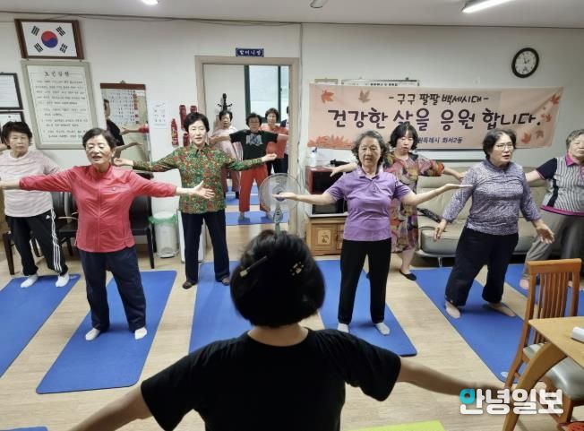 안녕일보 배윤 기자 | 수원특례시 팔달구 화서2동 지역사회보장협의체는 지난 24일, 어르신들의 활기찬 노후와 건강증진을 위해 구구팔팔 백세시대 ‘꽃뫼 체조교실’을 꽃뫼버들마을 진흥아파트 경로당에서 개최했다.