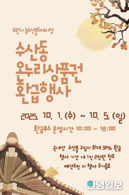 안녕일보 배윤 기자 | 수원시농수산물도매시장 수산동이 추석을 앞두고 온누리상품권 환급 행사를 연다.