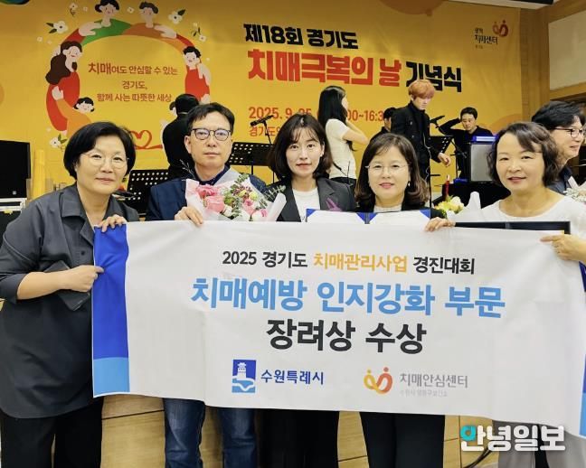 안녕일보 배윤 기자 | 수원시 영통구보건소가 2025년 경기도 치매관리사업 경진대회에서 치매예방 및 인지강화 부문 장려상을 받았다. 시상은 25일 ‘2025년 경기도 치매극복의 날’ 기념식 중 진행됐다.