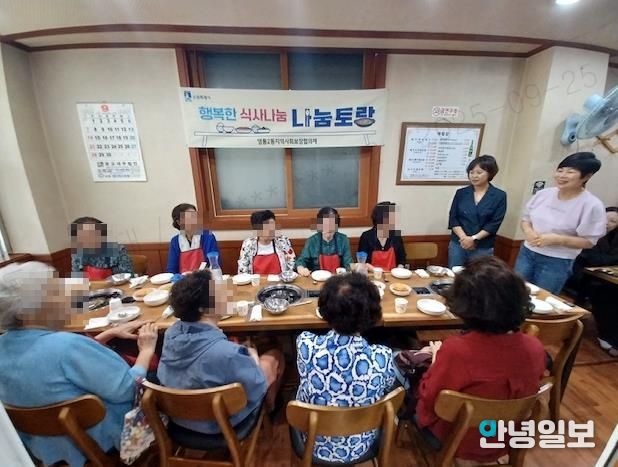 나눔토랑은 지역사회보장협의체 민경춘 부위원장이 관내 생활 환경이 어려운 취약계층 어르신 및 경로당 어르신들을 모시고 매달 푸짐한 한끼 식사를 대접하는‘나눔+레스토랑’의 의미를 지닌 사업이다.
