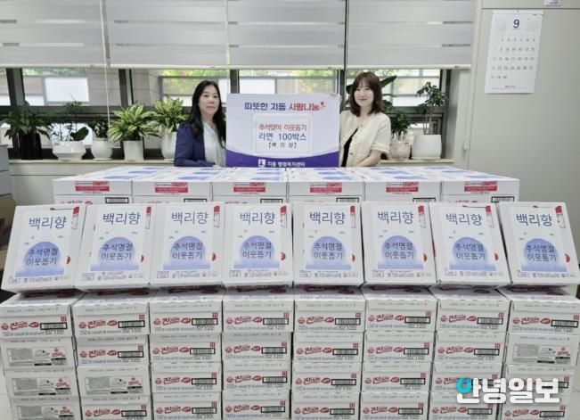 이날 전달 받은 라면은 지동 관내 홀몸어르신 및 저소득 대상자 100가구에게 전달될 예정이다.