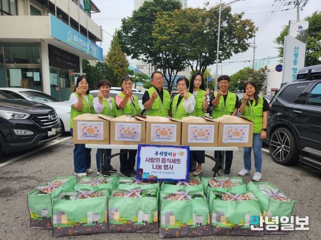 2018년부터 명절마다 신평동 지역사회보장협의체 주관으로 추진하는 사업으로 추석을 맞아 협의체 위원들이 지역 내 복지 사각지대 15가구에 송편, 식혜, 김치, 전 등 명절 음식을 직접 만들어 안부를 확인하며 전달했다.