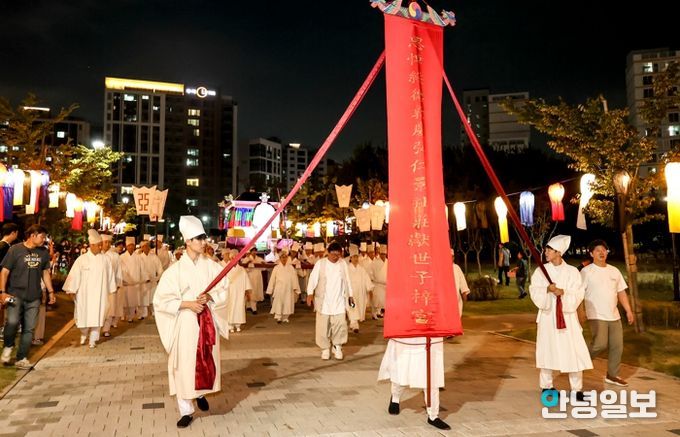 이어, 횃불로 죽산마에 불을 붙이는 ‘죽산마(竹散馬) 소지 퍼포먼스’가 웅장하게 펼쳐져 시민들의 이목을 끌었다. 여기에는 왕의 장례식에서 영혼을 천상까지 극진히 봉송한다는 의미가 담겨있다.
