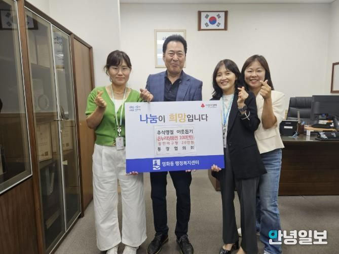 영화동 통장협의회는 명절마다 각각의 통장들이 뜻을 모아 이웃돕기에 참여하고 있으며 기부한 상품권은 취약계층 33세대에 전달할 예정이다.