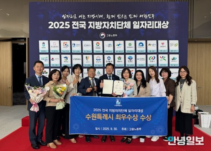 안녕일보 배윤 기자 | 수원특례시가 고용노동부 주관 ‘2025년 전국지방자치단체 일자리 대상’ 지역일자리 목표 공시제 부문에서 최우수상(고용노동부장관상)을 받았다.