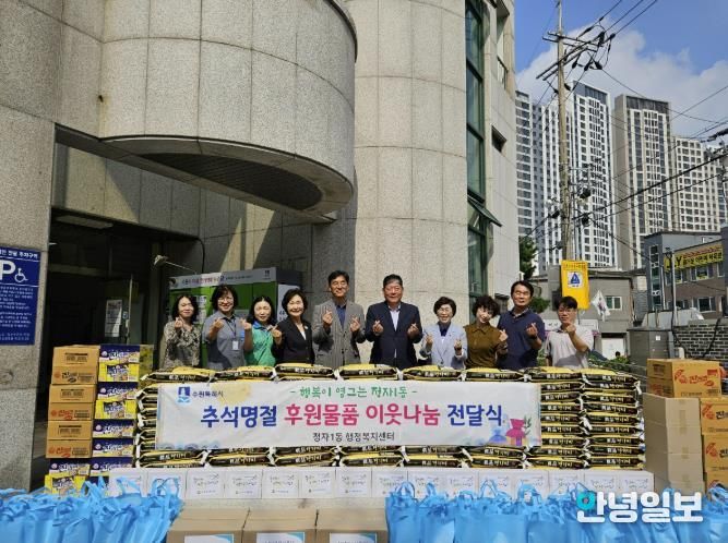 안녕일보 배윤 기자 | 수원시 장안구 정자1동은 지난 1일, 추석 명절을 앞두고 관내 단체, 기업, 개인 등에서 기탁한 성금과 물품을 어려운 이웃들에게 전달하는 ‘추석 이웃사랑 나눔 전달식’을 개최했다.