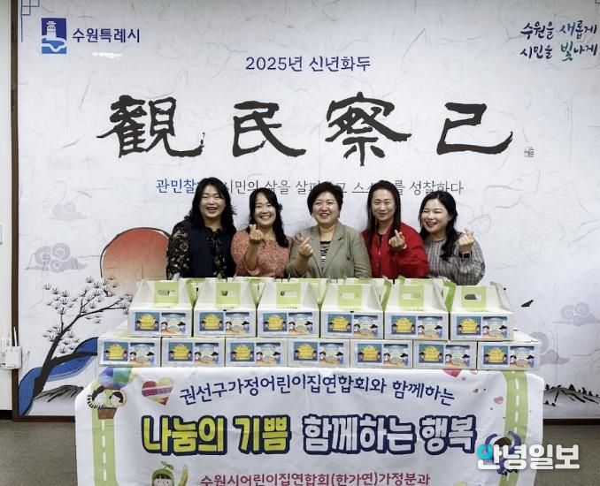 김향아 권선구가정어린이집연합회장은 “아이들과 함께 나눔의 기쁨을 실천할 수 있어 뜻깊게 생각하며, 앞으로도 지역사회에 도움이 되는 활동을 이어가겠다”라고 전했다.