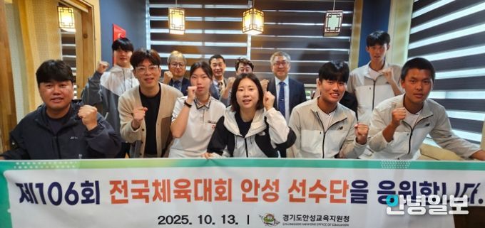 안녕일보 배윤 기자 | 경기도안성교육지원청은 안성교육지원청 교육장, 교육과장, 안성시 체육회 임원 등이 참석한 가운데 제106회 전국체육대회에 출전하는 안성 관내 고등학교 소프트테니스 학생 선수들의 건강하고 활기찬 경기를 기원하며 대표 선수들을 격려했다.