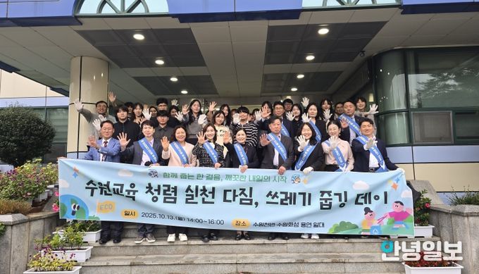 안녕일보 배윤 기자 | 경기도수원교육지원청은 10월 13일, 매월 추진 중인 청렴 캠페인의 일환으로 전 부서가 함께하는 ‘청렴 실천 다짐 쓰레기 줍깅 데이’를 실시했다.