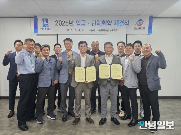 안녕일보 배윤 기자 | 수원특례시는 14일 수원시청 노동조합(환경관리원)과 ‘2025년 임금 및 단체협약’을 체결했다.