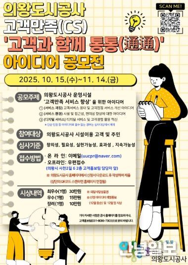 안녕일보 배윤 기자 | 의왕도시공사는 고객만족(CS) 아이디어 공모전‘고객과 함께 통통(通通)’을 추진한다고 밝혔다.