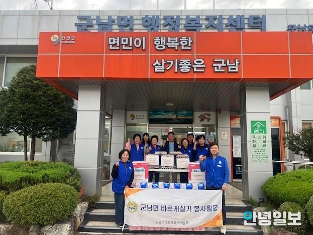 군남면 바르게살기운동협의회는 매년 관내 취약계층을 위해 생필품 키트 등 후원물품을 기탁하고 있으며, 지역의 어려운 이웃을 위해 솔선수범하여 따뜻한 도움의 손길을 보내고 있다.