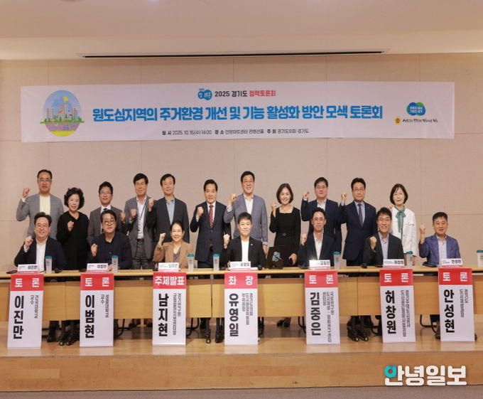 안녕일보 배윤 기자 | 경기도의회 도시환경위원회 유영일 부위원장(국민의힘, 안양5)이 좌장을 맡은 '원도심지역의 주거환경 개선 및 기능 활성화 방안 모색 토론회'가 10월 15일 안양아트센터 컨벤션홀에서 개최됐다. 이번 토론회는 경기도와 경기도의회가 공동으로 주최하는 ‘2025 경기도 정책토론회’의 일환으로 개최됐다.