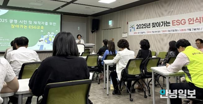 안녕일보 배윤 기자 | 광명시는 시민과 기업의 환경·사회·지배구조(ESG) 인식 제고와 실천 역량 강화를 위해 추진한 ‘2025년 찾아가는 ESG 교육’을 지난 15일 5회차 교육을 끝으로 마무리했다.