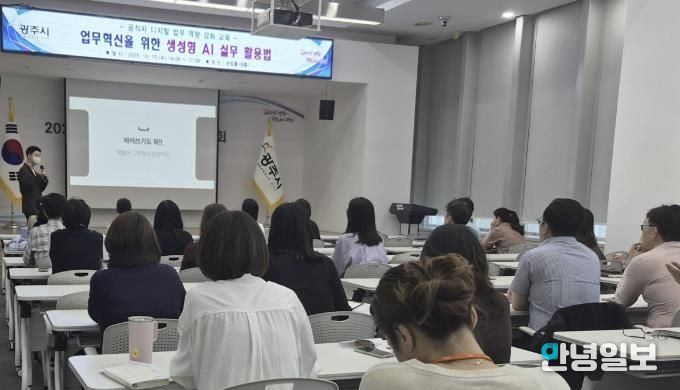 안녕일보 배윤 기자 | 광주시는 지난 15일 시청 순암홀에서 공직자 70여 명을 대상으로 디지털 업무 역량 강화를 위한 ‘업무혁신을 위한 생성형 AI 실무 활용법’ 교육을 실시했다.